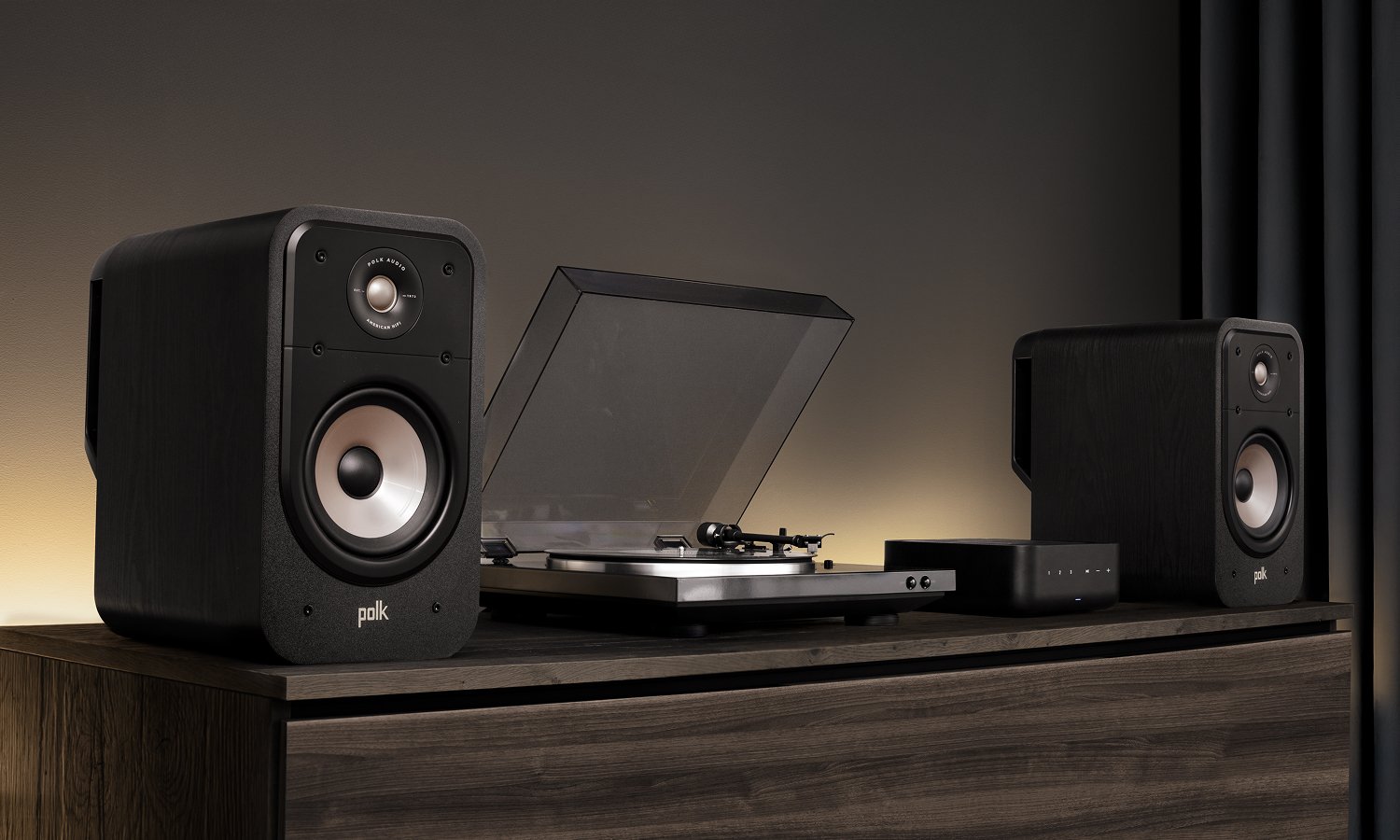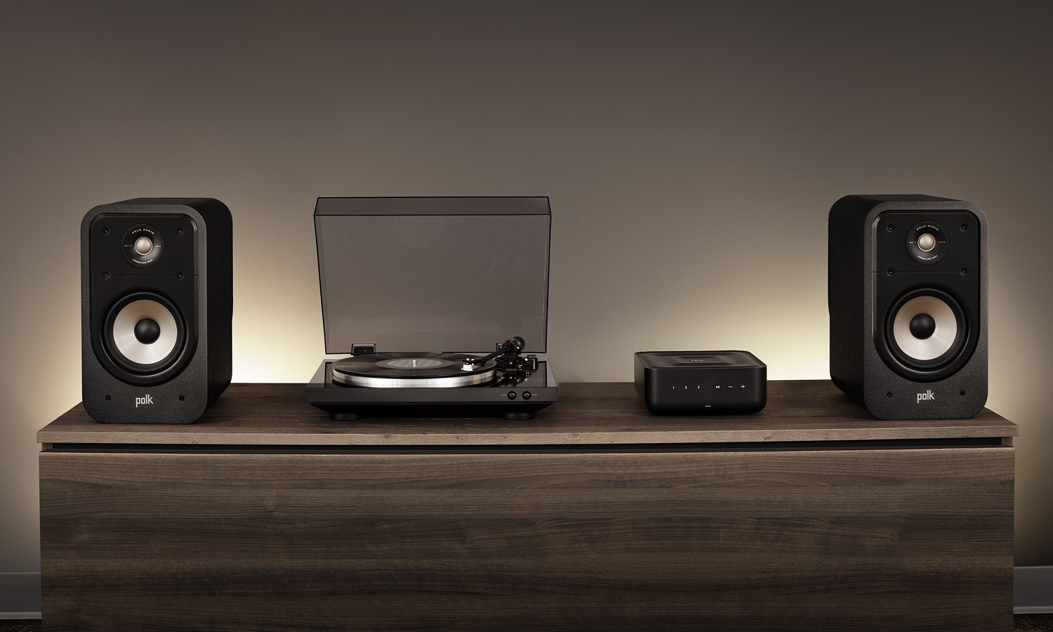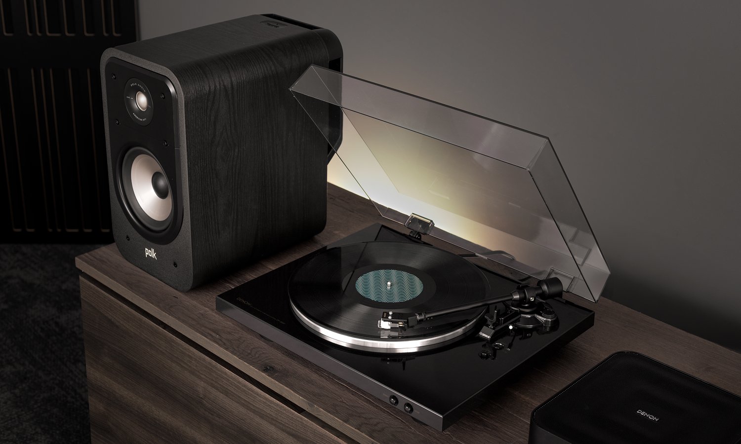 Rediscover the warmth of your favorite records with the Denon x Polk Vinyl Bundle. This three-piece system combines Polk’s acclaimed Signature Elite ES20 speakers with Denon’s legendary turntable and amplifier performance for a complete setup that blends analog warmth and digital precision. Play records, stream high-resolution audio, and enjoy it all in room-filling Polk sound.