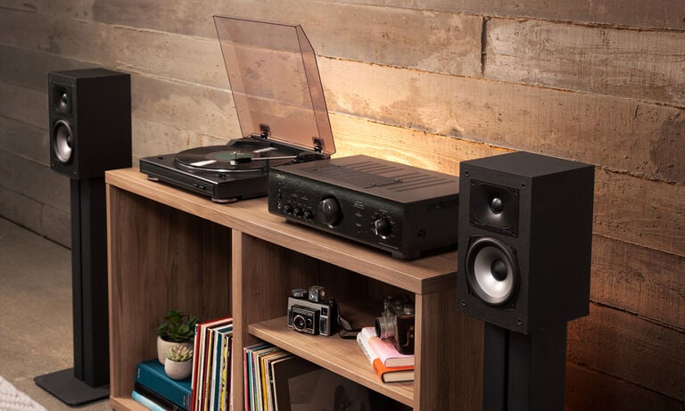 - Built-in phono preamp—no extra components needed